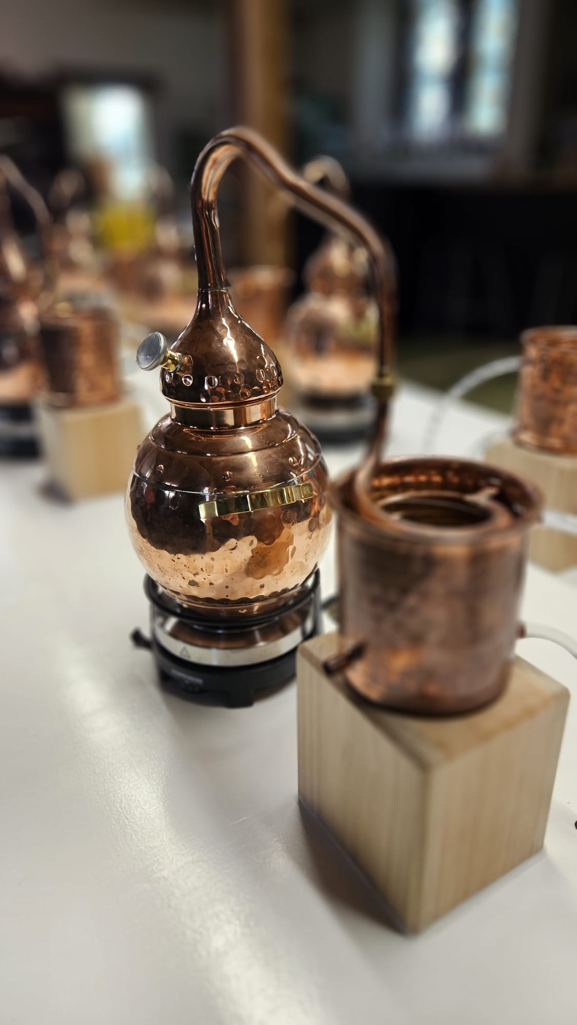 Dans notre atelier, nous distillons selon les méthodes traditionnelles, avec l’aide d’alambics en cuivre sélectionnés pour leur précision aromatique.